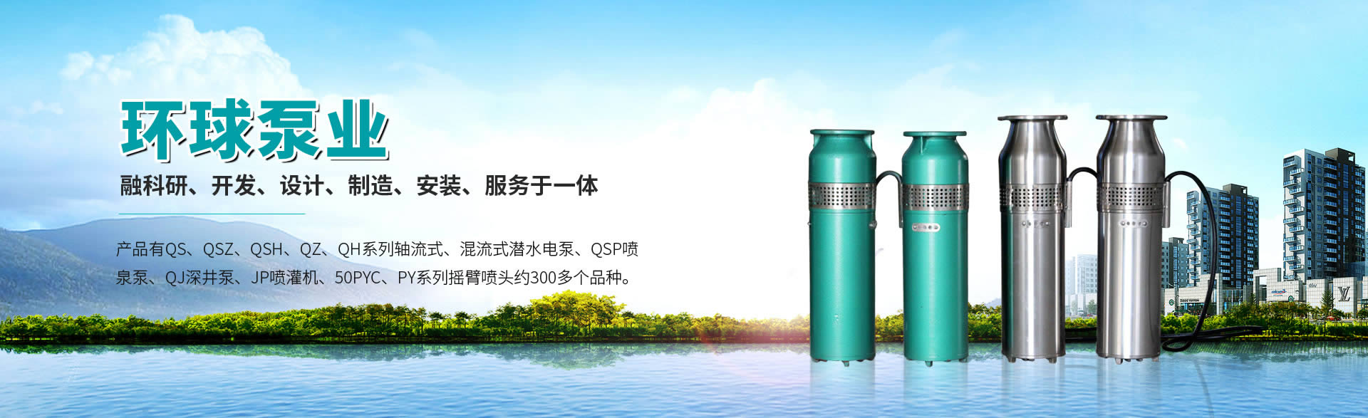 環(huán)球泵業(yè) 產(chǎn)品展示公司噴泉泵產(chǎn)品有QJ系列潛水泵、QSP系列噴泉泵、QS系列農(nóng)用泵、不銹鋼水泵等約300多個(gè)品種。